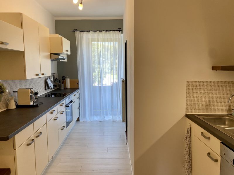 Bad mit Dusche / WC und Fenster, voll ausgestattete Küche.