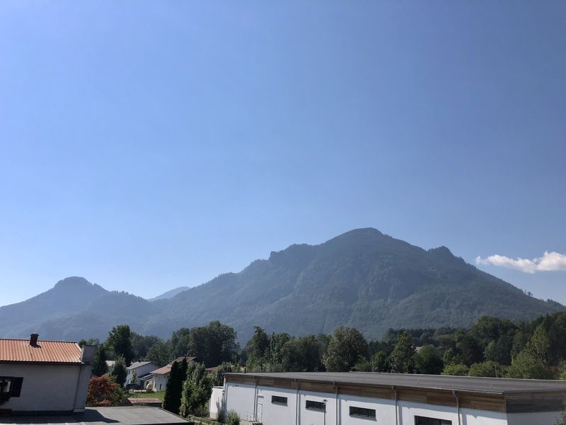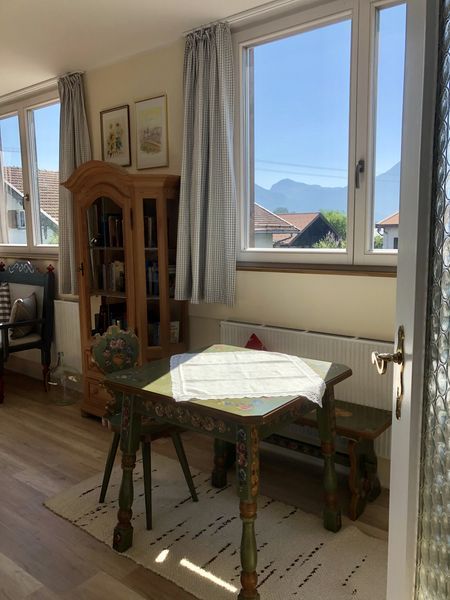 Die freundliche, helle 64m² große NR-Ferienwohnung für max. 2 Personen und einem Kind (bis 3 Jahre) im 1. OG mit bayerischem Flair und Blick auf die umliegenden Berge (Wendelstein, Riesenkopf, Kranzhorn, Heuberg etc) bis ins Kaisertal.